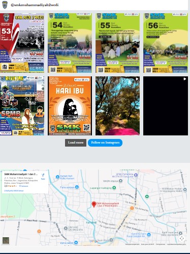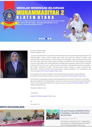 Website ini juga menampilkan program unggulan seperti ekstrakurikuler KOKAM dan Hizbul Wathan, serta kompetensi keahlian Teknik Kendaraan Ringan (TKR) dan Teknik Sepeda Motor (TSM).
